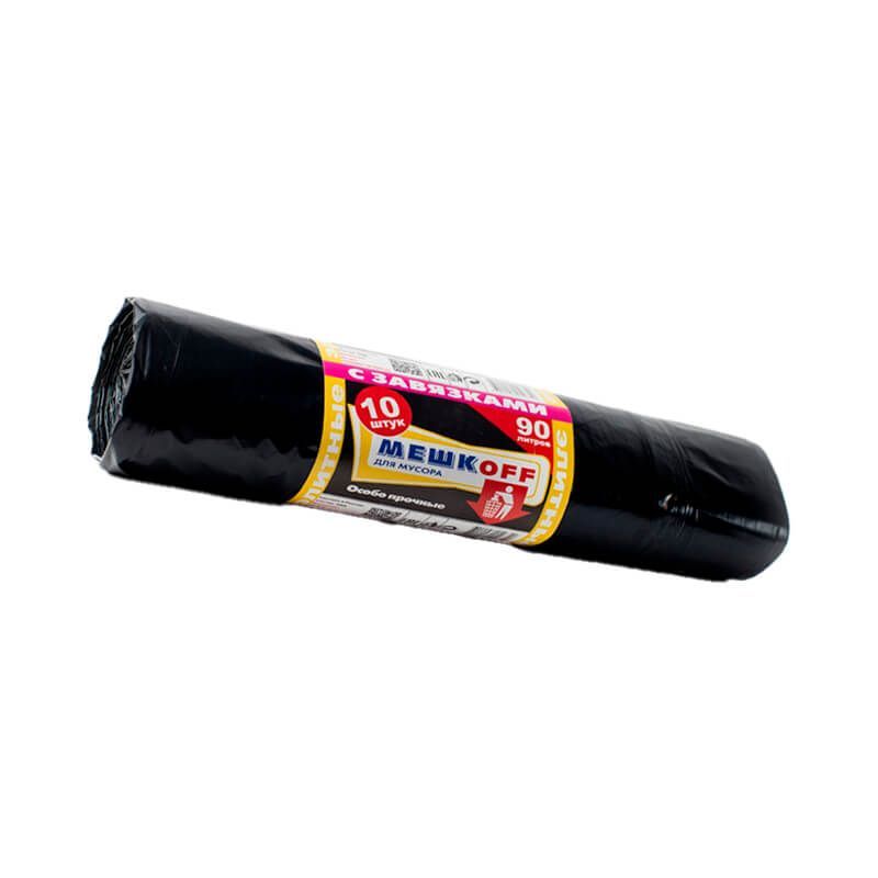 Мешки для мусора 90 л, с завязками, черные, в рулоне 10 шт., ПВД, 40 мкм, 900х700 мм, МЕШКОFF, 3774