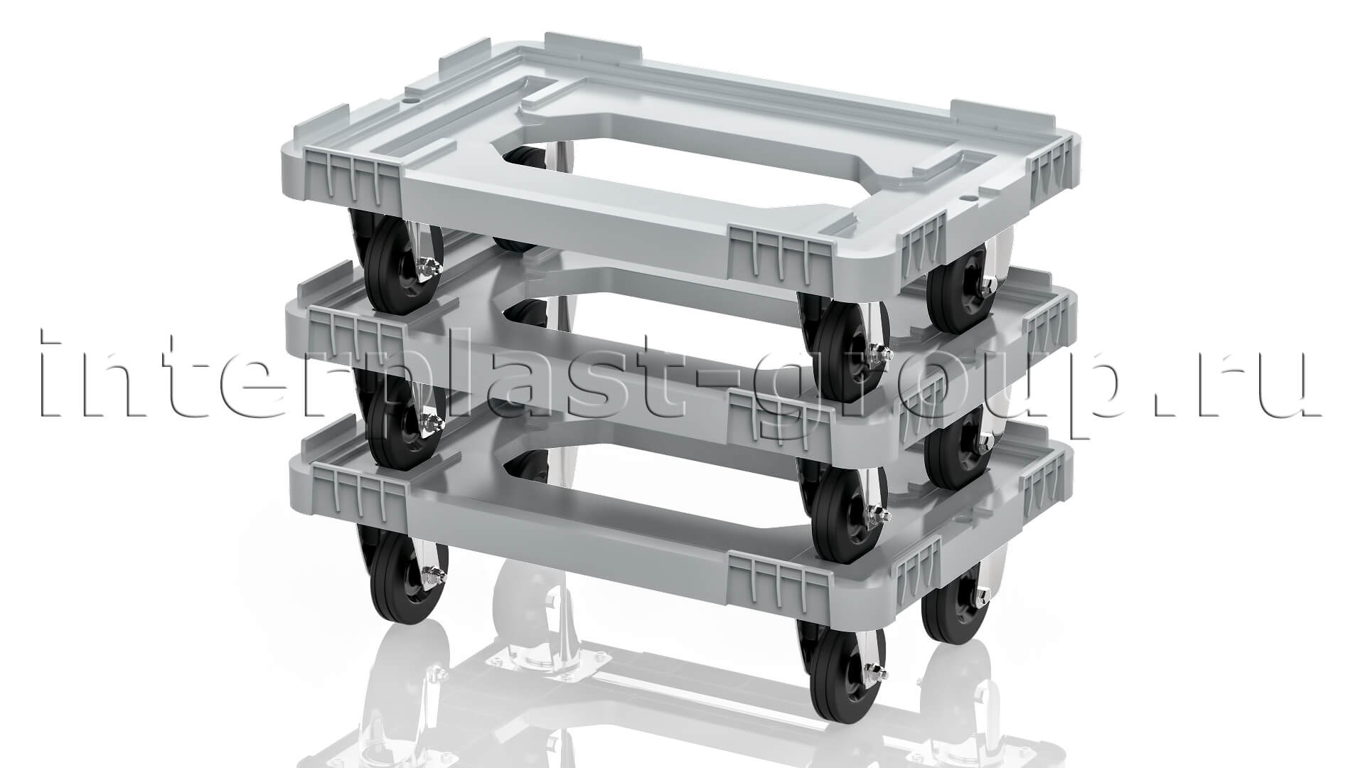 Тележка пластиковая с отверстием без тормозов усиленная серая